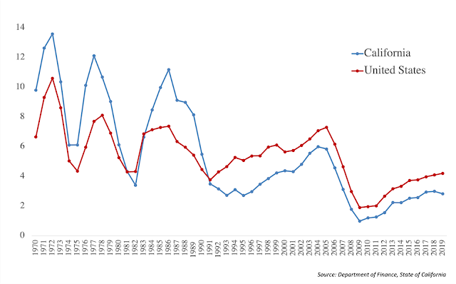 High housing costs are rooted in both demand- and supply-side factors. On the demand side, California boasts robust jobs and household income growth. Between 1990 and 2017, high-paying industries embraced the most vigorous job growth, including information technology (up 127 percent), education and health services (up 107 percent), and professional and business services (up 84 percent) (CA Government 2019). In 2021, the state accounted for 44 percent of the nation’s new jobs that year.